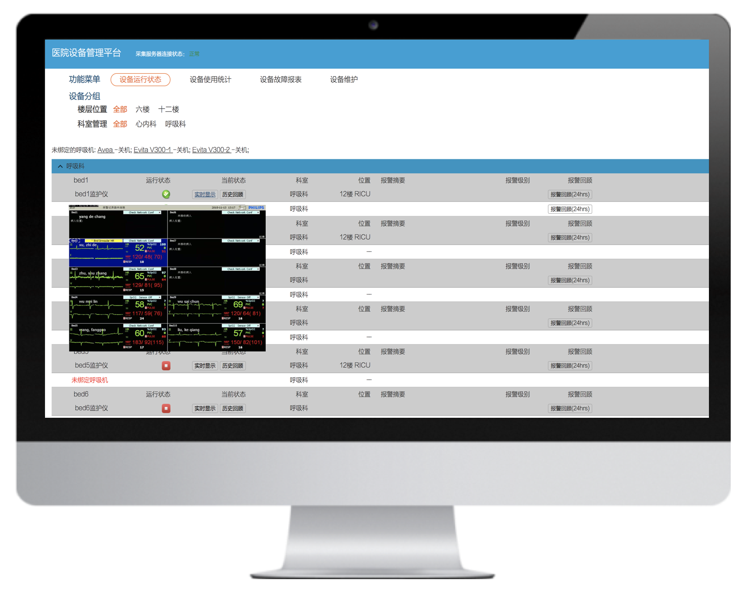 病床綁定、患者體征實(shí)時監(jiān)護(hù)、精確告警、告警響應(yīng)處置等